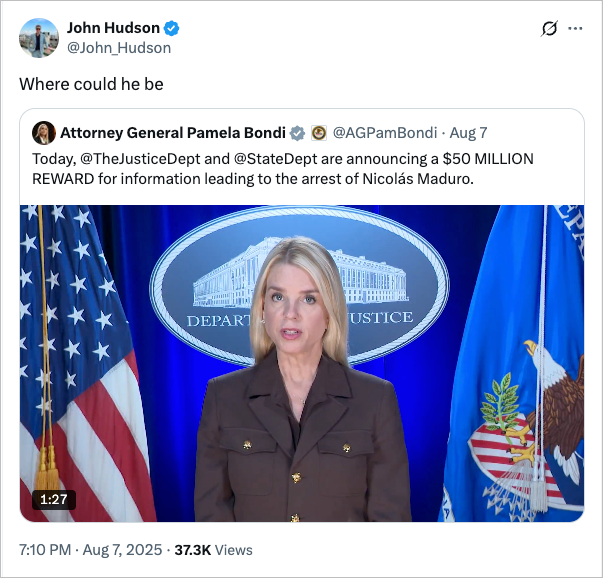 - increased the reward to $50 million for information leading to Venezuelan President Nicolás Maduro’s arrest for alleged drug trafficking.