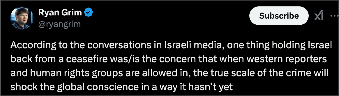 “Throughout the contentious year inside the State Department, senior leaders repeatedly disregarded their own experts. They cracked down on leaks by threatening criminal investigations and classifying material that was critical of Israel. Some of the agency’s top Middle East diplomats complained in private that they were sidelined by Biden’s National Security Council. The council also distributed a list of banned phrases, including any version of “State of Palestine” that didn’t have the word “future” first. Two human rights officials said they were prevented from pursuing evidence of abuses in Gaza and the West Bank.” - ProPublica, January 15