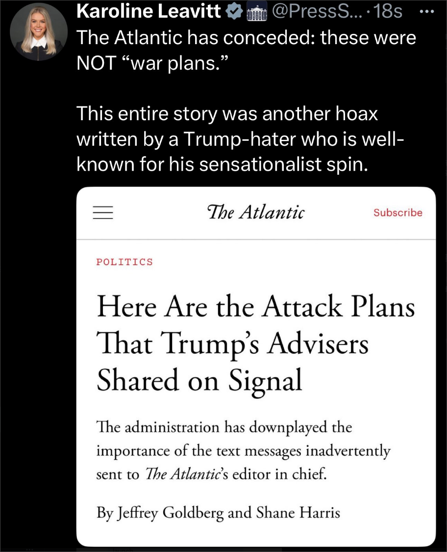 The White House scrambled to contain the fallout, cycling through explanations: blaming Signal for a malfunction, accusing Goldberg of hacking, and eventually brushing it off as a simple mistake anyone could have made.