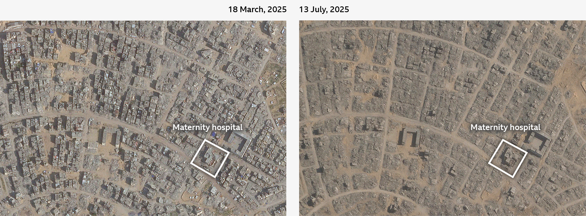 - A BBC investigation reveals that Israel has been leveling vast swaths of land in Gaza. Satellite images show “entire blocks torn to the ground” in recent weeks — including areas where fighting is no longer active. The destruction is especially extensive in Rafah, where Israel has proposed building concentration camps for Palestinians, which it refers to as a “humanitarian city.” (BBC)