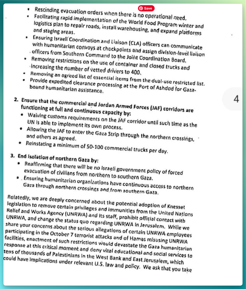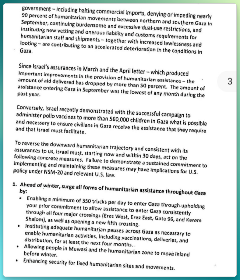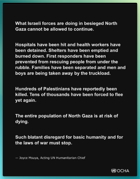 On the same day the letter was issued, the UN announced that Israel had been blocking nearly all aid to northern Gaza for at least two weeks.