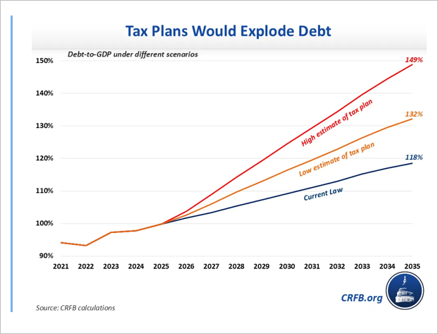 - Explode the national debt, pushing it to 132% of GDP by 2035