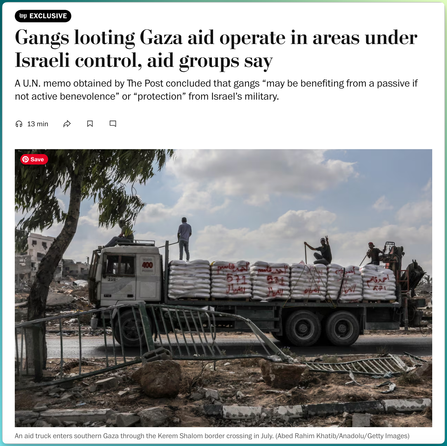 However, human rights groups on the ground say this isn't the case. According to The Washington Post, local crime groups and rival Hamas factions, not Hamas itself, are stealing the aid in areas controlled by the Israel Defense Forces.