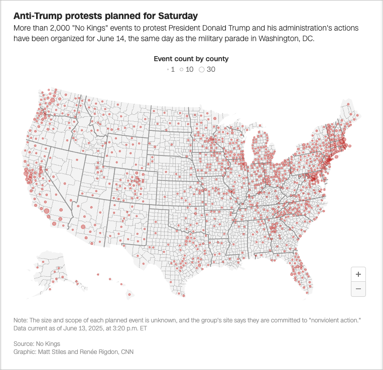 Meanwhile, nearly 2,000 protests organized by the 50501 Movement—“50 states, 50 protests, one movement”—are taking place across the country. Rallies are expected in Philadelphia, Atlanta, Charlotte, Tallahassee, and beyond, denouncing what organizers call Trump’s authoritarian overreach, including his use of the military for immigration enforcement. National Guard units have been mobilized in Virginia, Texas, Nebraska, and Missouri as a precaution, though governors have urged nonviolence.