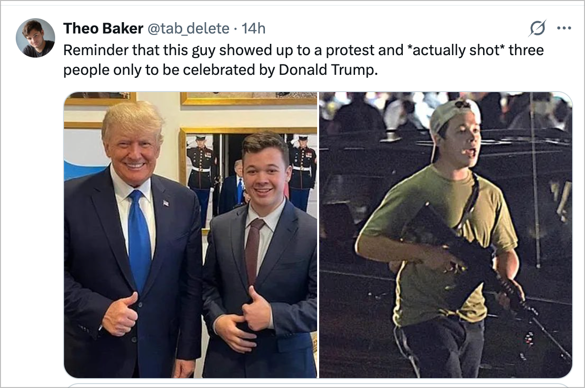 The same party that labeled Kyle Rittenhouse—who, in 2020, shot three protesters, killing two, with an AR-15—a hero.