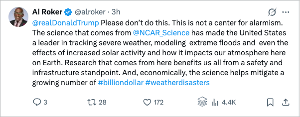 - The administration says it will shut down the National Center for Atmospheric Research (NCAR). OMB Director — and Project 2025 architect — Russell Vought announced the move, accusing the agency of pushing “climate alarmism.” Vought said any relevant weather research would be shifted elsewhere, without offering specifics. (USA Today)