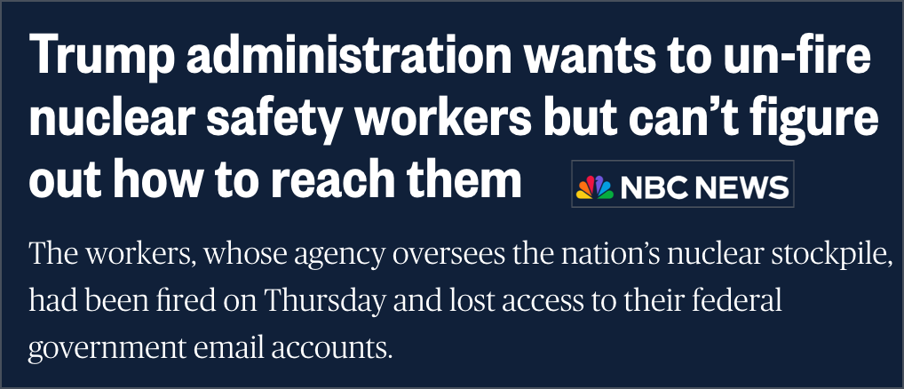"The firings unfolded at such a chaotic pace that DOGE ended up pausing the process and rescinding some terminations." NBC